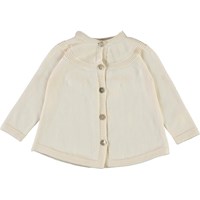 Gisela is een parelmoer kleurige katoenen vest voor hele kleine kinderen in een fijne klokvorm.