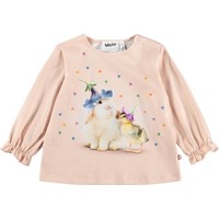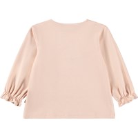 Roze, lang mouwenshirt met dierenprint voor de kleintjes, gemaakt van zachte biologische katoenen jersey. Het shirt heeft een losse pasvorm, elastiek met rucheranden aan de mouwen en drukknoopjes op de schouder voor gemakkelijk aan- en uitkleden.
