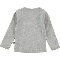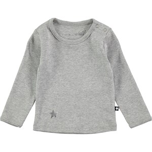 Grijs shirt met lange mouwen met een ster op de voorkant. Praktische drukknoop op één schouder.