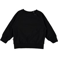 Elsa is een zwarte babytrui met een schattige print van jonge konijntjes op de voorkant. Elsa heeft raglanmouwen en drukknopen in de hals.