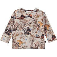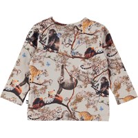 Eva is een beige babytopje van 100% biologisch jersey katoen. Het heeft lange mouwen en drukknopen op één schouder. Eva heeft de Cubs Harmony print, waarop verschillende jonge dieren te zien zijn, die in vrede en harmonie samenleven.