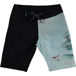 Coole, losse zwemshort met een digitale glijbaanprint, klittenbandsluiting aan de taille en een zijzakje. Dit product heeft 50+ UV-bescherming en is getest voor, tijdens en na gebruik.
