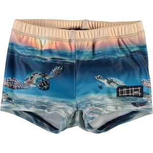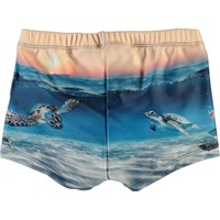 Nansen is een zwembroek voor baby's en kleine kinderen met een print van schildpadden onder de wateroppervlakte van de oceaan. Het heeft een elastische taille en is gemakkelijk om in te bewegen. Het heeft een extra binnenlaag om te voorkomen dat het gaat lekken. Molo's zwemkleding heeft UV bescherming 50+. Het product is CE-gemarkeerd en getest volgens norm EN-13758-1.