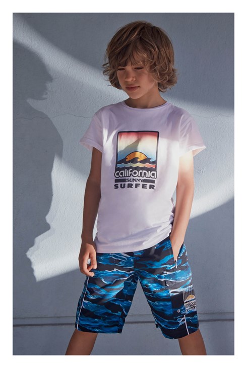 Natan is een nieuwe Molo zwemshort met blauwe golven die op camouflage lijken. Het is iets langer met een losse pasvorm en een zak op een van de pijpen. Molo's zwemkleding heeft UV bescherming 50+. Het product is CE-gemarkeerd en getest volgens norm EN-13758-1.