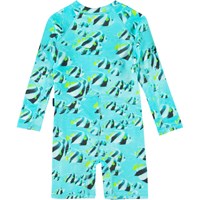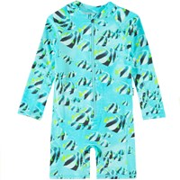 Neka LS is een praktisch turkoois UV-zwempak met lange mouwen en een vissenprint. Het heeft een lange ritssluiting aan de voorkant en is gemaakt van elastisch materiaal waardoor je je er makkelijk in kunt bewegen en het gemakkelijk is om aan en uit te trekken. Het zwempak bedekt de meeste bovenarmen en bovenbenen en beschermt zo de gebieden waar een kind de meeste kans heeft om te verbranden. Molo's zwemkleding heeft 50+ UV-bescherming. Het product is CE-gemarkeerd en getest volgens norm EN-13758-1.