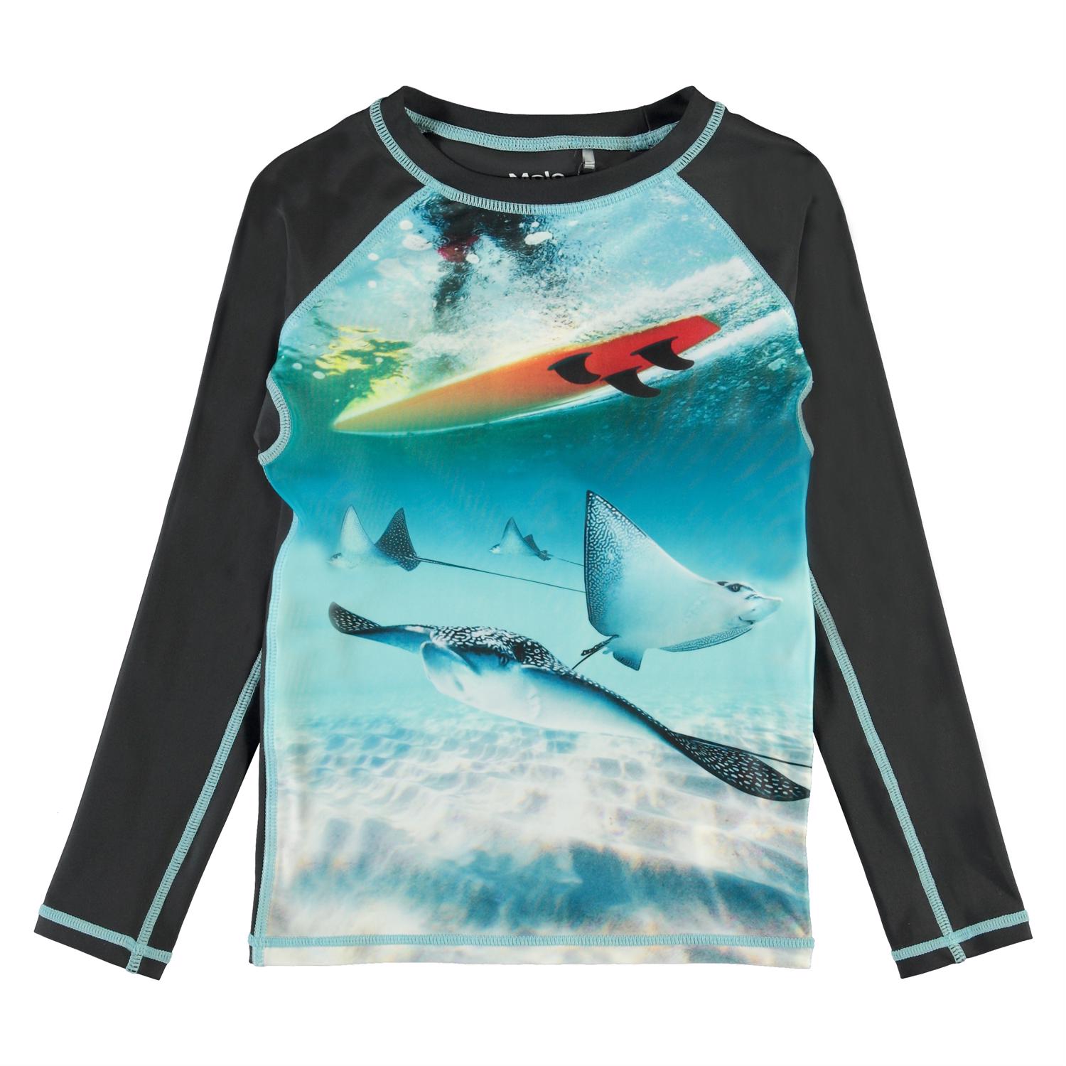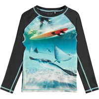 Neptune LS is een fantastische UV zwemshirt met zwarte mouwen en een print van pijlstaartroggen onder de oppervlakte van de zee en surfplanken daarboven.Het beschermt tegen de schadelijke stralen van de zon. Het zwemshirt is lichtgewicht, comfortabel en gemakkelijk om in te bewegen. Draag het zwemshirt met een bijpassende short voor een coole surflook. Molo's zwemkleding heeft UV bescherming 50+. Het product is CE-gemarkeerd en getest volgens norm EN-13758-1.