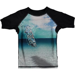 Zwemshirt voor zwemmen en bescherming tegen de schadelijke stralen van de zon. Het shirt heeft een UV-bescherming van 50+ en is lichtgewicht, comfortabel en gemakkelijk om in te bewegen. Er is een bijpassende broekje in dezelfde afdruk.