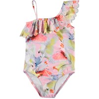 Net is Molo's nieuwste zwempak in de ‘Cockatoos' print. Het is asymmetrisch met een diagonale ruche die naar boven gaat en een eenvoudig schouderbandje aan de andere kant. Molo's zwemkleding heeft een 50+ UV-bescherming. Het product is CE-gemarkeerd en getest volgens norm EN-13758-1.
