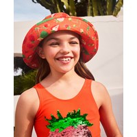 Badpak van gerecycled polyester met UV-bescherming 50+ gemaakt voor actieve kinderen.Het badpak heeft een normale pasvorm, een diepe rug en is volledig gevoerd.Het is rood met een omkeerbare pailletten aardbei aan de voorkant. Het product is CE-gemarkeerd en getest volgens norm EN-13758-1.