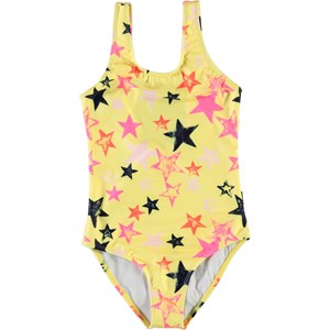 Nika is een klassiek badpak met brede schouderbanden. Deze Nika stijl is in het geel met een sterrenprint. Molo's zwemkleding heeft UV bescherming 50+. Het product is CE-gemarkeerd en getest volgens norm EN-13758-1.