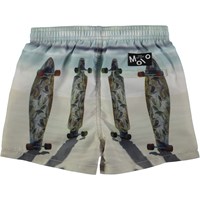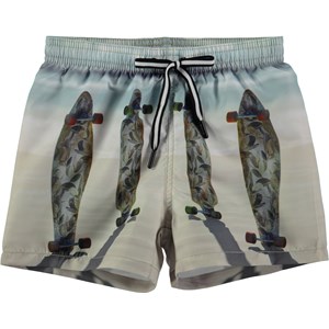 Korte zwemshort met een digitale surfplank print. De zwemshort heeft een elastische taille met koord, een zak en een Molo applicatie op de achterkant. Dit product heeft 50+ UV-bescherming en is getest voor, tijdens en na gebruik.