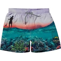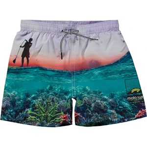 Niko is een sportieve zwemshort met een print van een paddle board en de oceaan gezien vanuit onder en boven water. Niko heeft een elastische tailleband met koordjes voor een comfortabele pasvorm. Draag het met een bijpassend t-shirt. Molo's zwemkleding heeft 50+ UV-bescherming.