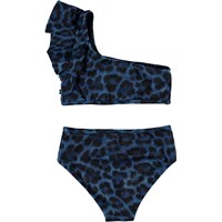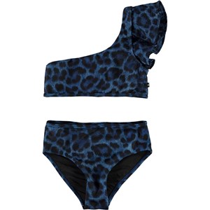 Nola is een asymmetrische bikini in een blauwe jaguarprint met mooie details. Het heeft een enkele schouderbandje met een mooie ruche die zorgt voor een bijzondere, sculpturale look. Nola heeft een goede pasvorm en het broekje heeft een halfhoge taille. De bikini heeft een goede bedekking en is gemakkelijk aan en uit te trekken. De zwemkleding van Molo heeft een UV-bescherming van 50+. Het product is CE-gemarkeerd en getest volgens norm EN-13758-1.
