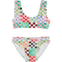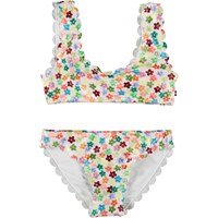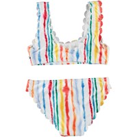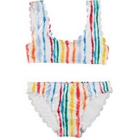 Bikini met een print van aquarel strepen in regeboogkleuren. De bikini heeft een prachtige golvend effect aan de boord. De bikini is geschikt voor zowel oudere als jongere kinderen. Molo's zwemkleding heeft 50+ UV-bescherming. Het product is CE-gemarkeerd en getest volgens norm EN-13758-1.