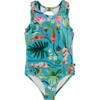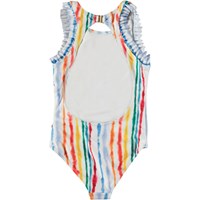 Op een tanktop geïnspireerd badpak met een print van aquarelstrepen in regenboogkleuren. Het badpak heeft kleine ruches bij de armsgaten en een uitgesneden achterkant met schuifsluiting aan de achterkant. Het badpak is gemaakt van gerecycled rekbaar polyester, waardoor je het gemakkelijk aan- en uittrekt. Het biedt een hoog niveau van 50+ UV-bescherming tegen de zon. Het product is CE-gemarkeerd en getest volgens norm EN-13758-1.
