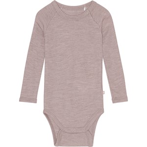 Oudroze rompertje in 100% merinowol. Dit rompertje heeft lange mouwen en drukknopen bij de hals en in het kruis. Draag het met de broek Sting die dezelfde print heeft.