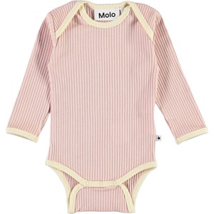 Faros is een roze baby romper in rib met lange mouwen met witte boordjes. Het heeft drukknopen in het kruis. Baby essentials.