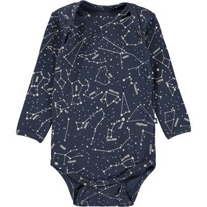 Faros is een blauwe rompertje met een print van een astrologische kaart. Draag het met de bijpassende broek. Faron heeft drukknopen in het kruis.