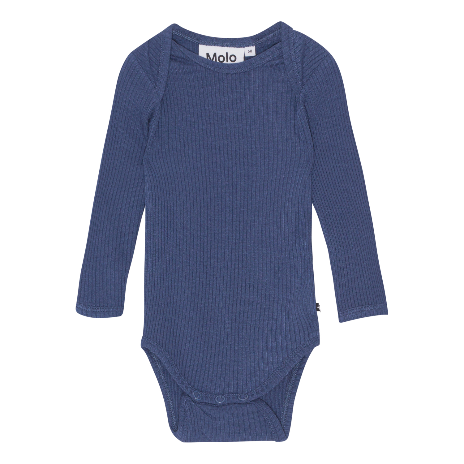 Donkerblauwe rompertje van ribjersey. Dit rompertje is van rib viscose jersey en heeft lange mouwen. Draag het met de broek Sting die dezelfde kleur heeft.