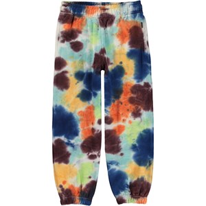 Veelkleurige joggingbroek met tie-dye print. Deze joggingbroek is van 100% katoen. Het heeft elastiek en een koordje in de taille en elastiek aan de pijpen en zij- en achterzakken. De joggingbroek heeft een normale pasvorm. De tie-dye print van Molo is uniek en handgemaakt, wat betekent dat de print van stijl tot stijl kan verschillen.
