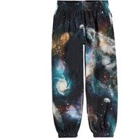 Adan is een unisex joggingbroek met een print van het heelal. Het heeft een elastische boord rond de pijpen en taille en ook voorzakken en een achterzak.