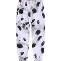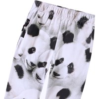 Zwart witte broek van biologisch katoen. De broek heeft een normale pasvorm, elastische taille, koordje aan de binnenkant, zijzakken, elastiek bij de enkels en een pandaprint.Deze stijl heeft een ongeborstelde binnenkant, wat betekent dat het lekker koel is op een warme dag.
