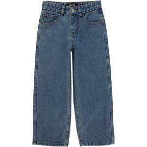 Aiden is Molo's nieuwe unisex blauwe jeans met een stoere en extra wijde pasvorm, geïnspireerd op de skaterwereld. De ruime pasvorm en de wijde pijpen zorgen ervoor dat je gemakkelijk in de jeans kunt bewegen. De taille kan worden aangepast met een binnenelastiek, waardoor het perfect is voor alle soorten en maten. Aiden is gemaakt van 100% katoen, wat het extra duurzaam maakt. Houd er rekening mee dat de maten tot en met 134 een drukknoop hebben en geen gewone jeansknoop.