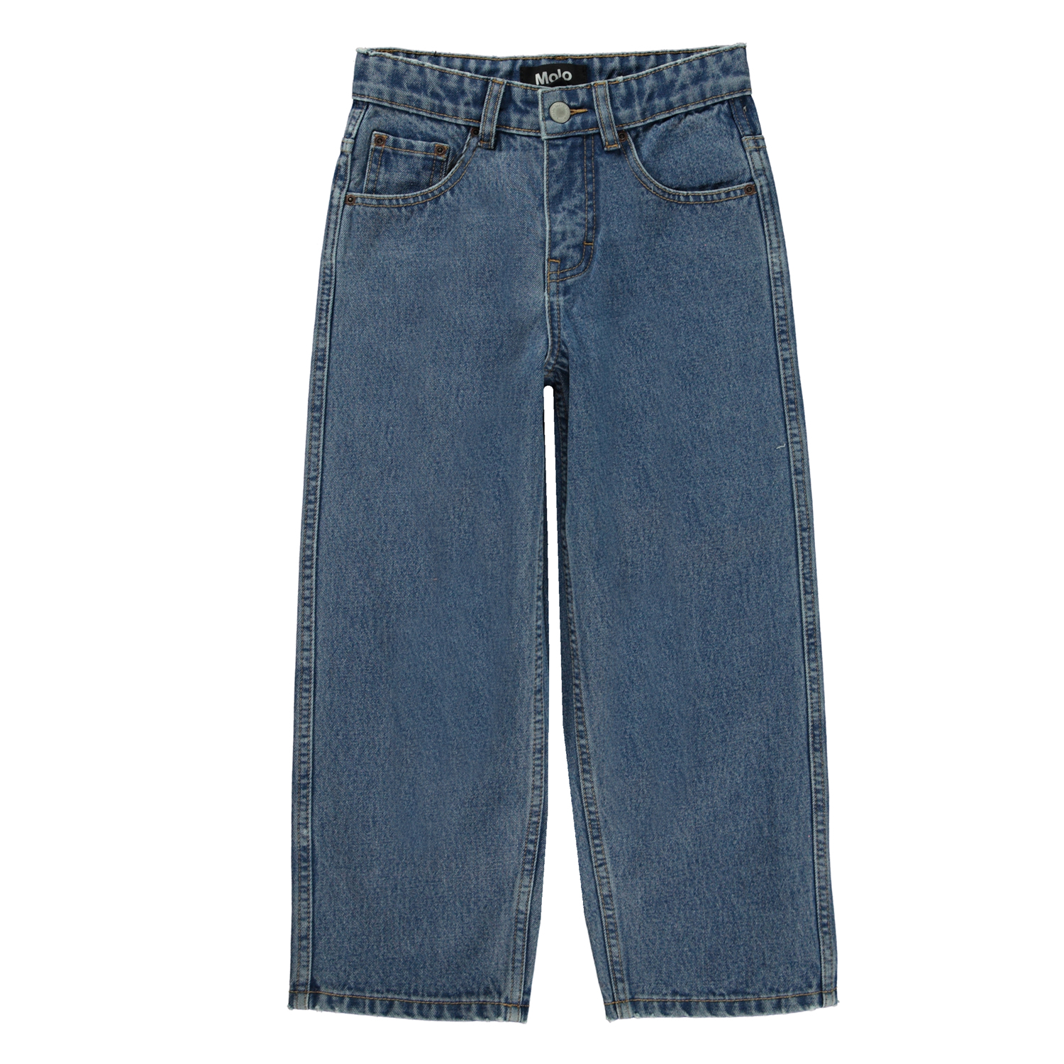 Aiden is Molo's nieuwe unisex blauwe jeans met een stoere en extra wijde pasvorm, geïnspireerd op de skaterwereld. De ruime pasvorm en de wijde pijpen zorgen ervoor dat je gemakkelijk in de jeans kunt bewegen. De taille kan worden aangepast met een binnenelastiek, waardoor het perfect is voor alle soorten en maten. Aiden is gemaakt van 100% katoen, wat het extra duurzaam maakt. Houd er rekening mee dat de maten tot en met 134 een drukknoop hebben en geen gewone jeansknoop.
