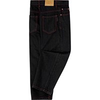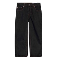 Zwarte jeans in een katoen/viscose mix met oranje stiksels. De broek heeft 5 zakken, wijde pijpen en een ritssluiting. Het is geïnspireerd op de skatercultuur en heeft een ruimvallende pasvorm. De tailleband van de broek kan worden versteld met een elastiek, zodat hij perfect past voor alle kinderen. Maten 92-134 hebben een drukknoop voor het gemakkelijk aan- en uittrekken, terwijl maten 140-176 een normale jeansknoop hebben.