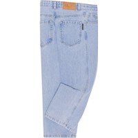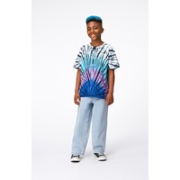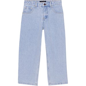 5-pocket lichtblauwe jeans van gewassen katoen. De jeans heeft een extra wijde look, geïnspireerd op de skaterwereld. Het heeft rechte pijpen en een rits- en knoopsluiting. Het heeft verstelbaar elastiek in de taille, zodat het bij de meeste kinderen perfect past. Houd er rekening mee dat de maten tot en met maat 134 drukknopen hebben en geen gewone knopen