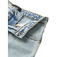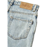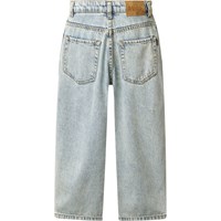 Lichtblauwe spijkerbroek gemaakt van biologisch katoendenim. De spijkerbroek heeft 5 zakken, rechte pijpen en een ritssluiting. Het is in een ruimvallende pasvorm met verstelbaar elastiek in de taille. De kleinste maten (92–134) hebben een drukknoop en de maten 140–176 hebben een klassieke jeansknoop.
