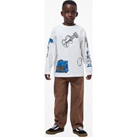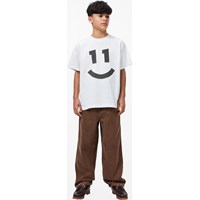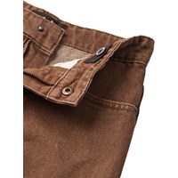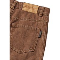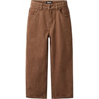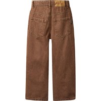 Bruine spijkerbroek gemaakt van katoenen denim. De spijkerbroek heeft 5 zakken, rechte pijpen en een ritssluiting. Het is in een ruimvallende pasvorm met verstelbaar elastiek in de taille. De kleinste maten (92–134) hebben een drukknoop en de maten 140–176 hebben een klassieke jeansknoop.