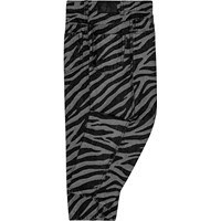 Grijze en zwarte jeans met zebra strepen. De jeans heeft 5 zakken, wijde pijpen en een ritssluiting. Geïnspireerd door de skater scene met een ruimvallende pasvorm. De tailleband kan worden versteld met een elastiek. Maten 92-134 hebben een drukknoop en maten 140-176 hebben een jeansknoop.