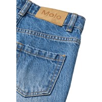Blauwe spijkerbroek gemaakt van katoenen denim. De spijkerbroek heeft 5 zakken, rechte pijpen, een ritssluiting en een normale pasvorm met een verstelbare elastiek in de taille. De kleinste maten (92–134) hebben een drukknoop en de maten 140–176 hebben een klassieke jeansknoop.