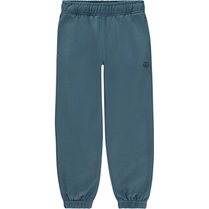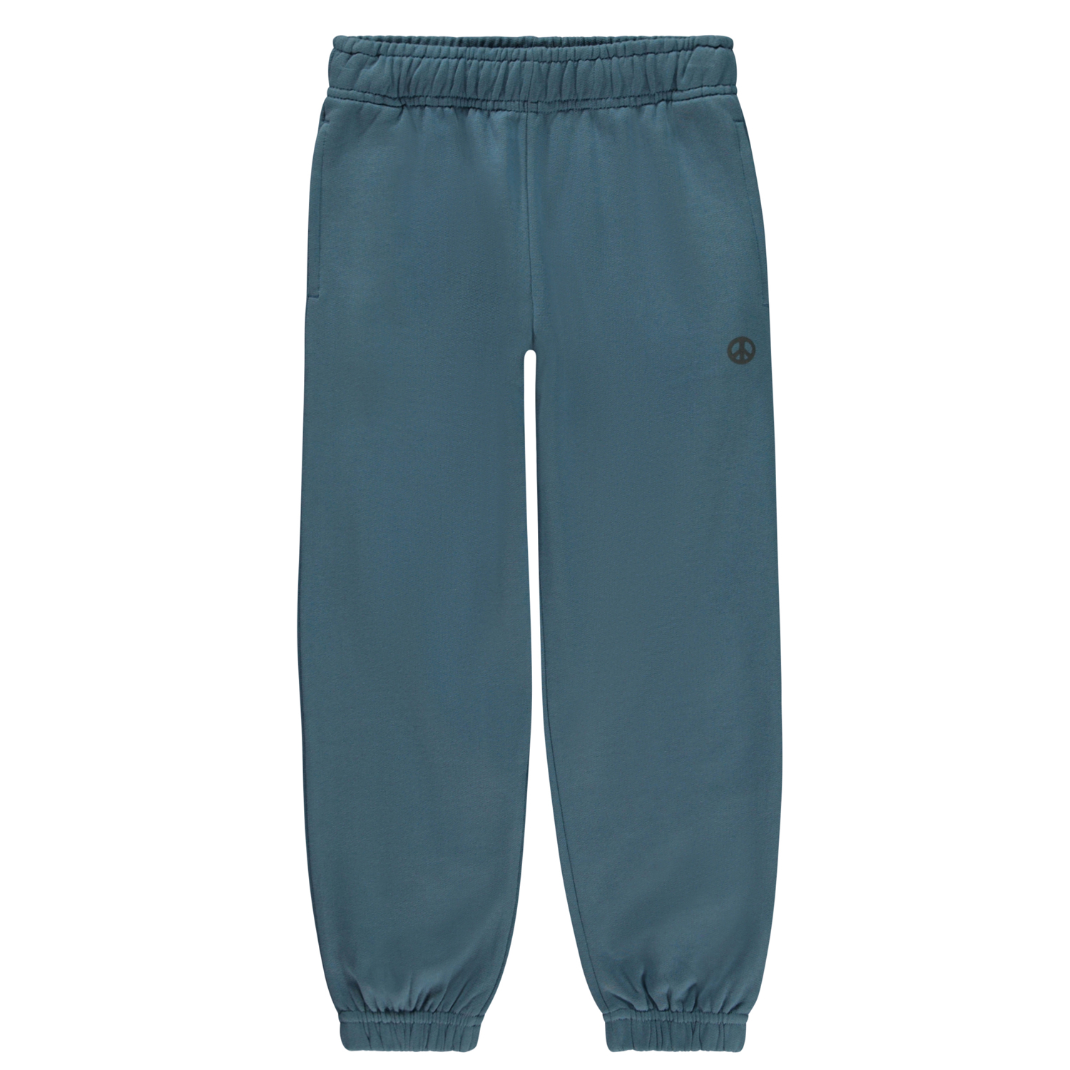 Am is een blauwe unisex joggingbroek met elastiek rond de taille en enkels.