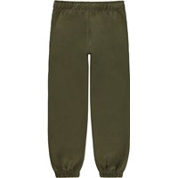 Legergroene joggingbroek met op de voorkant een zwart logo. Deze joggingbroek is van 100% katoen en heeft elastiek en koordjes aan de binnenkant van de taille. Het heeft elastiek bij de pijpen en zakken aan de zijkanten. De joggingbroek heeft een normale pasvorm.