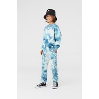 Am is een joggingbroek met een lichtblauwe en witte tie-dye print. Het heeft elastiek in de taille en aan de pijpen. Draag het met de bijpassende sweater.
