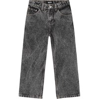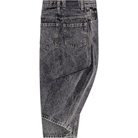 Donkergrijze oversized jeans met 5 zakken en riemlussen. De jeans heeft een zeer ruimvallende pasvorm en een vredesteken bij één van de zakken.