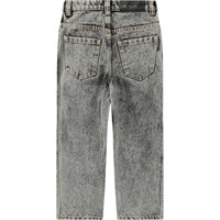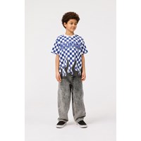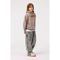 Donkergrijze oversized jeans met 5 zakken en riemlussen. De jeans is oversized en heeft een peace patch bij één zak.De tailleband is verstelbaar met een interne elastiek, zodat het perfect past voor alle kinderen. De maten 92-134 hebben een drukknoop, waardoor je de broek gemakkelijk aan en uit kunt trekken - maten 140-176 hebben een normale jeansknoop.Als je de voorkeur geeft aan een meer normale pasvorm, raden we je aan om een ??maat kleiner te kiezen dan normaal. Dit geldt ook als het kind tussen twee maten in zit.