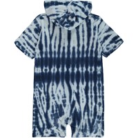 Mason is een blauwe tie-dye pakje van badstof met een capuchon, korte mouwen en pijpen. Het pakje is perfect voor op het strand of een duik in het water.