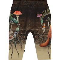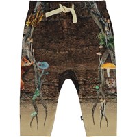 Voor de kleine kinderen een bruine broek met een print. De print neemt ons mee onder de grond naar de wortels van de bomen waar paddestoelen en kleine dieren leven. Deze broek is van 100% katoen en heeft koordjes in de taille. Draag het met de Eloy longsleeve die de “Tree Stump” print heeft.