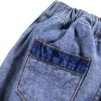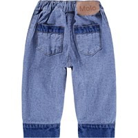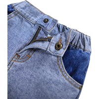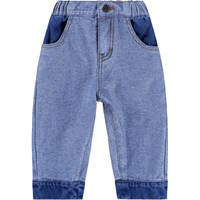 Blauwe spijkerbroek voor de kleintjes gemaakt van rekbaar zacht katoenen denim. De broek heeft een ruimvallende pasvorm, een knoop- en ritssluiting, zakken en een interne verstelbare elastiek voor een goede pasvorm.
