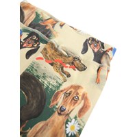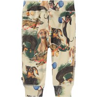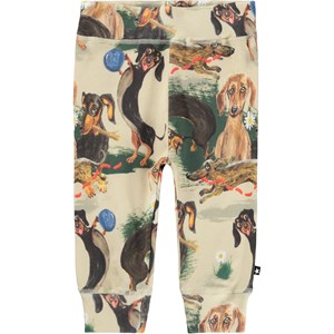 Beige broek voor de kleintjes gemaakt van zachte biologische katoenen jersey met een print van speelse hondjes. De broek heeft een brede elastische ribboord rond de taille en pijpen zodat het comfortabel draagt en veel bewegingsvrijheid biedt.