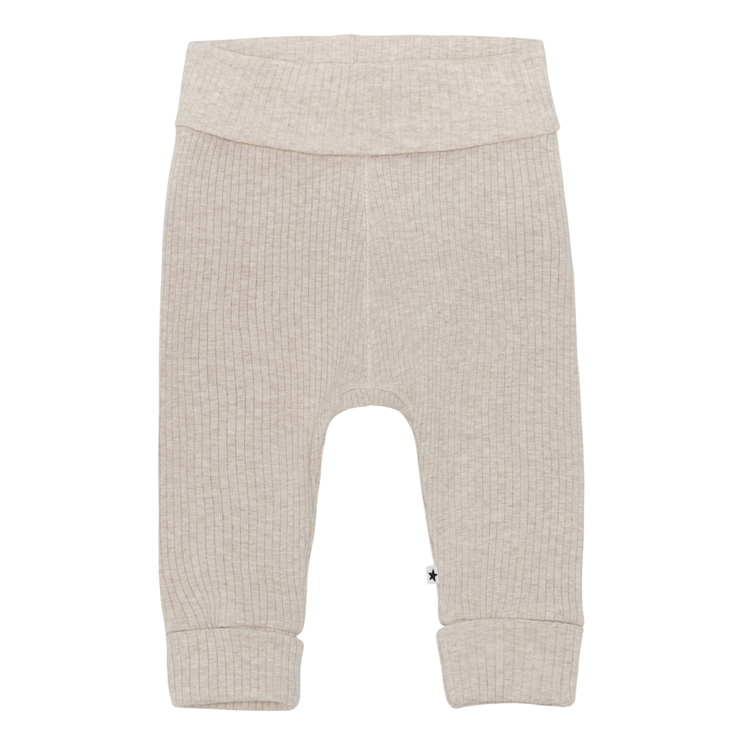 San is een lichtgrijze zachte babybroek in rib. Het heeft een brede elastische omgeslagen boord rond de taille en pijpen. Draag het met de bijpassende sweatshirt.