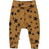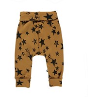 San is een zachte lichtbruine babybroek met een sterrenprint. Het heeft een brede elastische boord rond de taille en pijpen. De boord rond de taille en pijpen kunnen opgerold worden. Draag het met de bijpassende sweater.