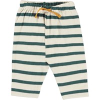Saxon is een blauwe gestreepte babybroek met bruine streepjes. Het heeft wijde pijpen en koordjes in de taille. Draag het met de bijpassende sweatshirt.