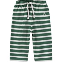 Blauw-wit gestreepte broek voor de kleintjes gemaakt van biologisch katoen. De broek heeft een ruimvallende pasvorm met een achterzak en een elastische tailleband met een koordje om het gemakkelijk aan en uit te trekken. Het lichte en luchtige ontwerp zorgt voor veel bewegingsruimte en op de zak vind je een klein geborduurd lachend gezichtje. Combineer de broek met de bijpassende sweater voor een complete set.