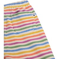 Zachte broekjes voor de kleintjes gemaakt van biologisch katoen met regenboogstrepen. Ze hebben een losse pasvorm en een elastische tailleband met trekkoord, waardoor ze gemakkelijk aan en uit te trekken zijn en comfortabel om in te bewegen.
