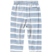 Blauw-wit gestreepte broek voor de kleintjes gemaakt van biologisch katoen. De broek heeft een ruimvallende pasvorm met een achterzak en een elastische tailleband met een koordje om het gemakkelijk aan en uit te trekken. Het lichte en luchtige ontwerp zorgt voor veel bewegingsruimte en op de zak vind je een klein geborduurd lachend gezichtje. Combineer de broek met de bijpassende trui voor een complete set.