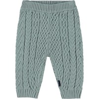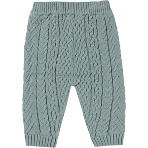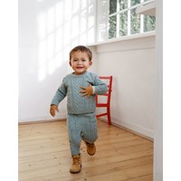 Voor de kleine kinderen een gebreide, grijs/groene broek met een kabelpatroon. Het is gemaakt van een katoen/wolmix, heeft lange pijpen en gebreide ribboord bij de taille en pijpen. Voor de perfecte set draag je de broek met de Bjork trui die dezelfde kwaliteit heeft.